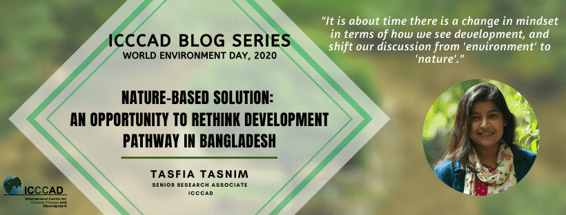 This blog is part of ICCCAD Blog Series for World Environment Day 2020. It is an insightful collection of discussion which encompasses the debate between nature and development. Furthermore, it dwells on Nature-based Solutions (NbS) as a holistic approach to tackle environmental and societal challenges as well as opportunities for Bangladesh in considering NbS as one of the core strategies in the upcoming development planning process for Bangladesh.