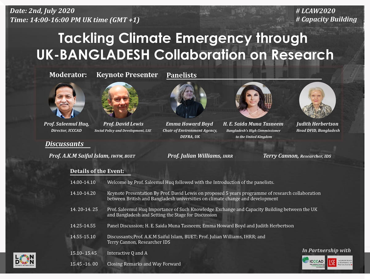 ICCCAD and LSE Jointly Organizing an online discussion “Tackling Climate Emergency through UK-BANGLADESH Collaboration on Research”