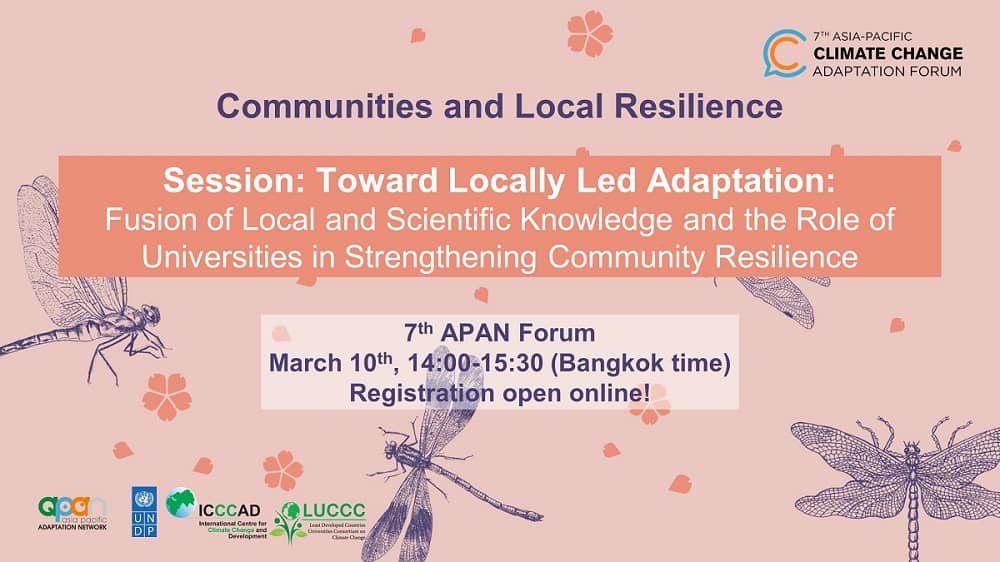 Against the backdrop of the current disconnect between local efforts and national frameworks and the urgency for locally led adaptation, the session will discuss the importance of fusing traditional knowledge and scientific knowledge, and of translating highly technical climate data and information into meaningful and simple user-friendly climate services products for local communities. A gender balanced panel representing different sub-regions of the Asia-Pacific and local level will highlight the gaps and challenges in doing so and suggest the steps forward to bring this into action. Finally, the panel will explore what role universities, given their multi-and-interdisciplinary pool of expertise and their connection with field-based research, can play in building the capacity of local stakeholders to enable them as leaders of ‘locally led adaptation’ in strengthening community resilience. The session will be followed by an open discussion with the audience to bring in their perspectives and ideas.