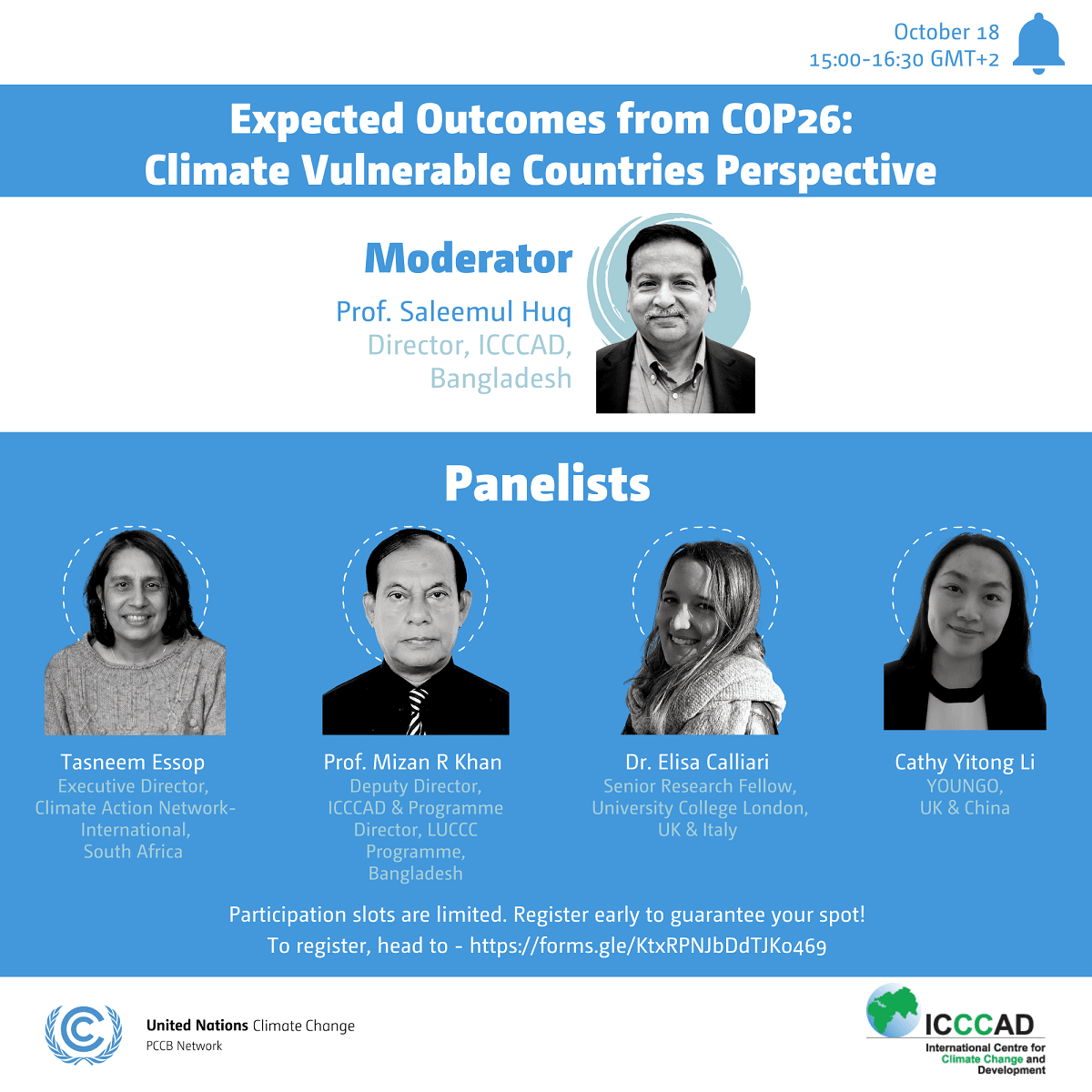 ICCCAD and PCCB Network Jointly Organizing Webinar on “Expected outcomes from COP26: Climate Vulnerable Countries Perspective”