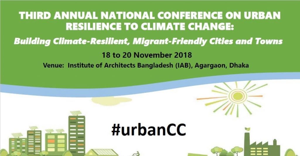 THIRD ANNUAL NATIONAL CONFERENCE ON URBAN RESILIENCE TO CLIMATE CHANGE: Building Climate-Resilient, Migrant-Friendly Cities and Towns 18 to 20 November 2018 Venue:  Institute of Architects Bangladesh (IAB), Agargaon, Dhaka BACKGROUND The Third Annual National Conference on Urban Resilience to Climate Change is expected to bring together experts, practitioners and policy makers to discuss a range …