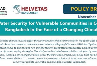 Panii Jibon (Water is Life) is a HELVETAS Swiss Intercooperation led initiative being implemented in collaboration with its local partners, that aims to address water related threats and vulnerabilities of an already impoverished population living in the disaster-prone coastal areas of Bangladesh. The overall objective of the Panii Jibon project is to build resilience and reduce well-being loss of climate change affected disadvantaged communities, and particularly vulnerable women and youth, in the disaster-prone areas of South West Bangladesh.